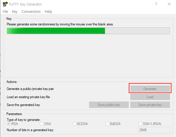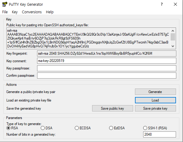 인증서를 생성하기 위해 putty gen이라는 프로그램을 이용합니다.