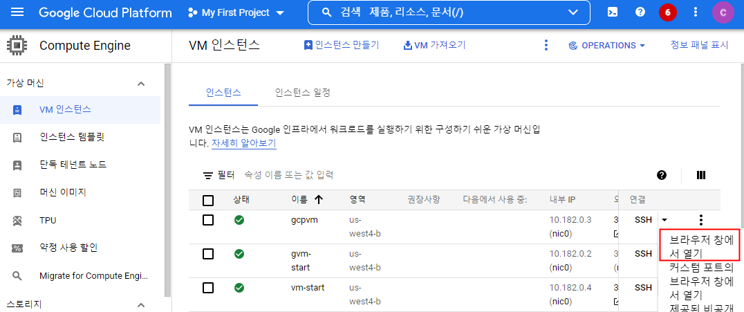 ⑥ GCP클라우드 가상머신(VM) 생성시에